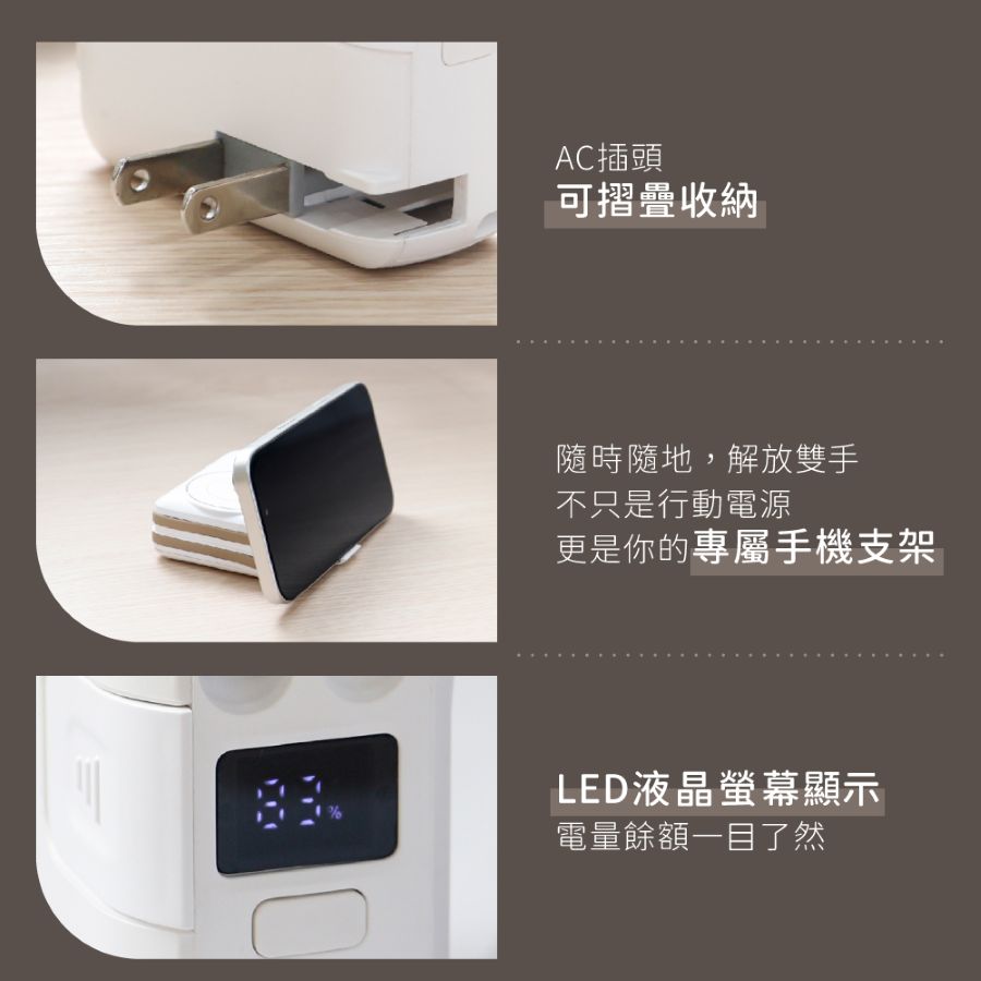 - AC、Type-C雙蓄電方式,AC插頭可摺疊收納。