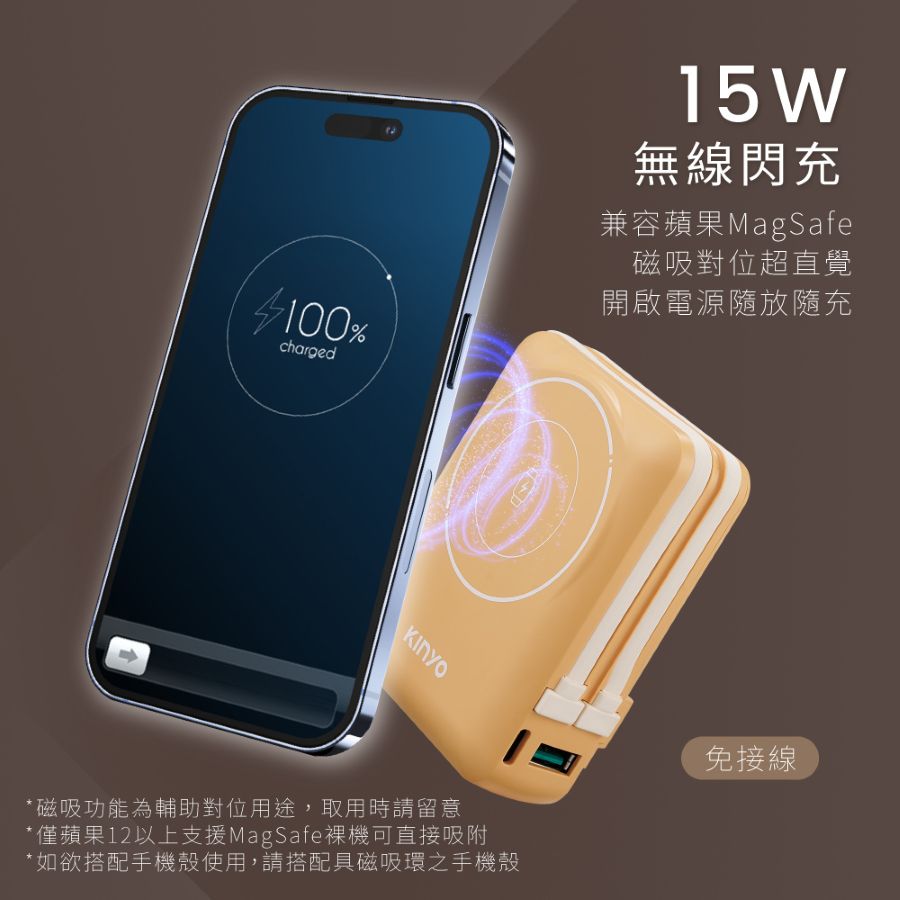 - 支援15W無線閃充,蘋果手機磁吸對位超直覺。