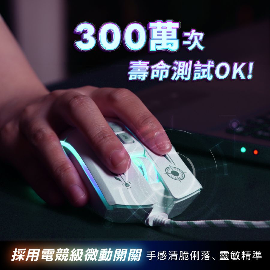 - 電競級微動開關-靈敏精準,可承受高達300萬次點擊