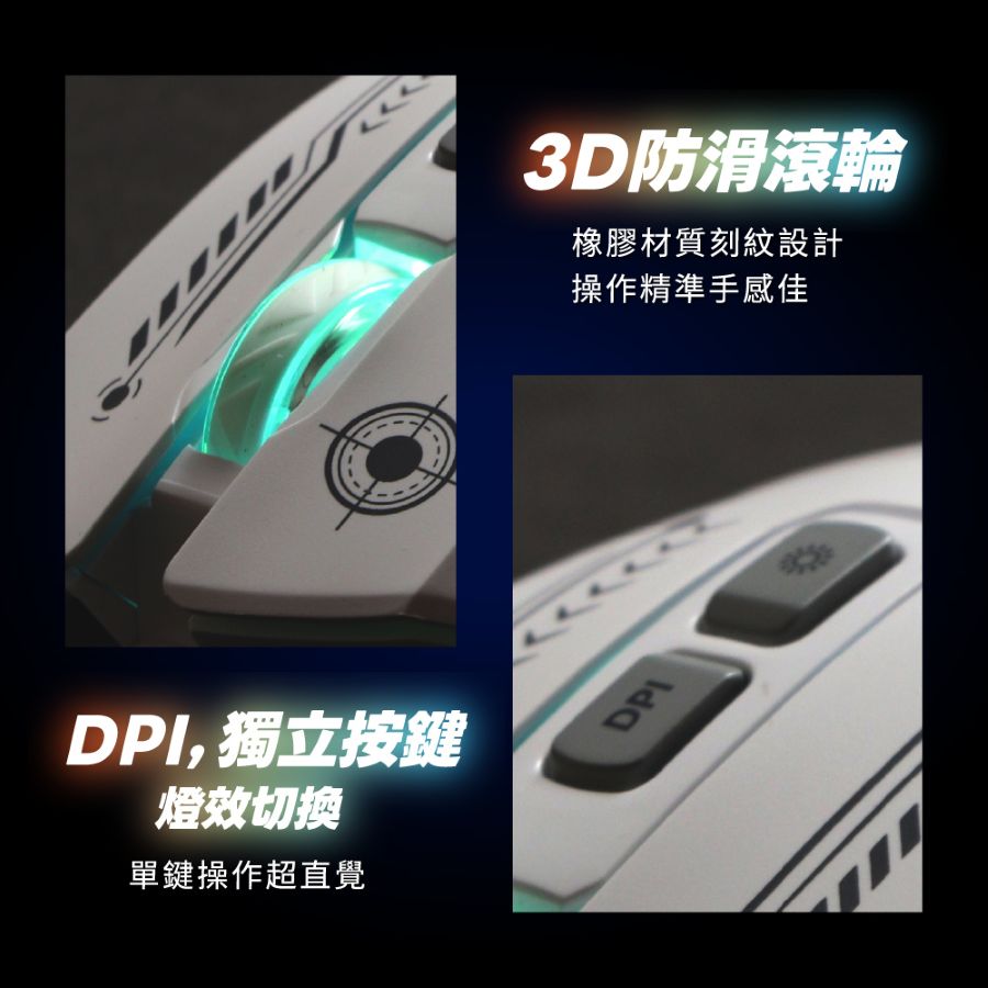 - DPI、燈效切換獨立按鍵,單鍵操作超直覺