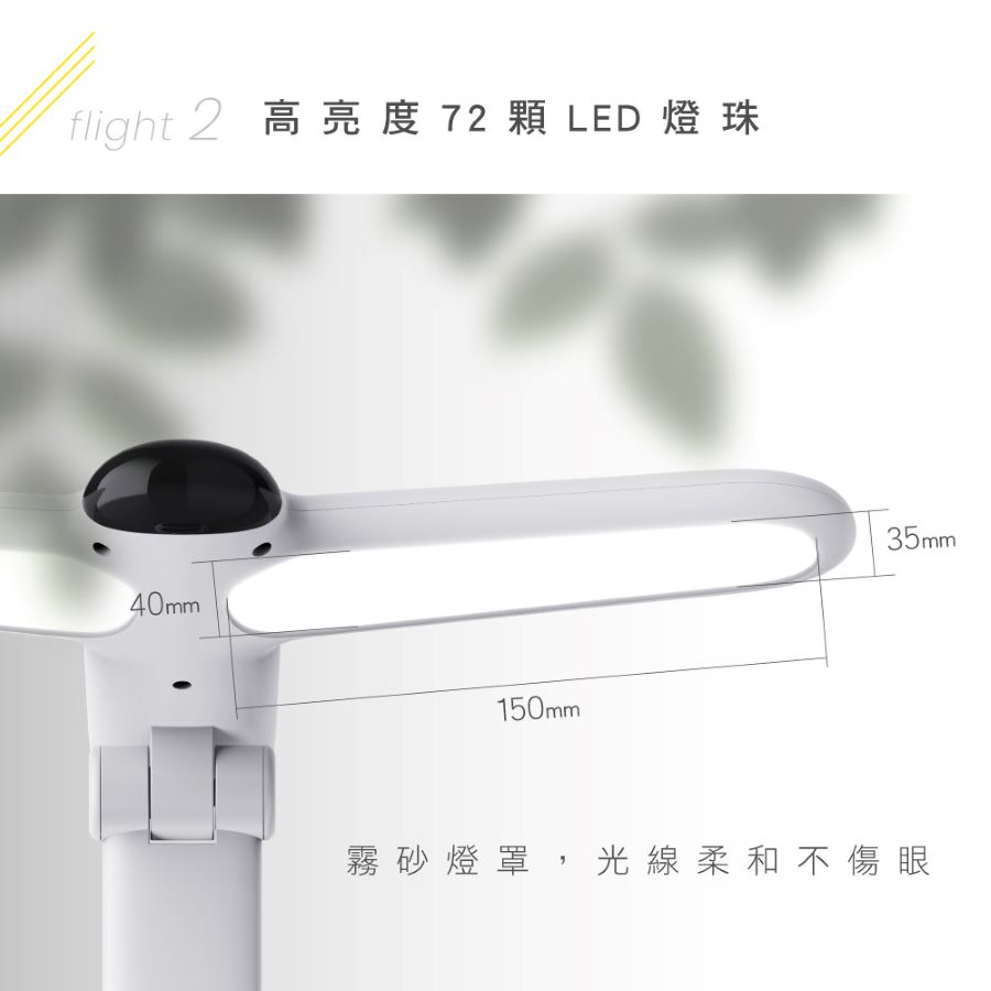 - LED燈光光源:SMD LED 72PCS(白光36+黃光36PCS)