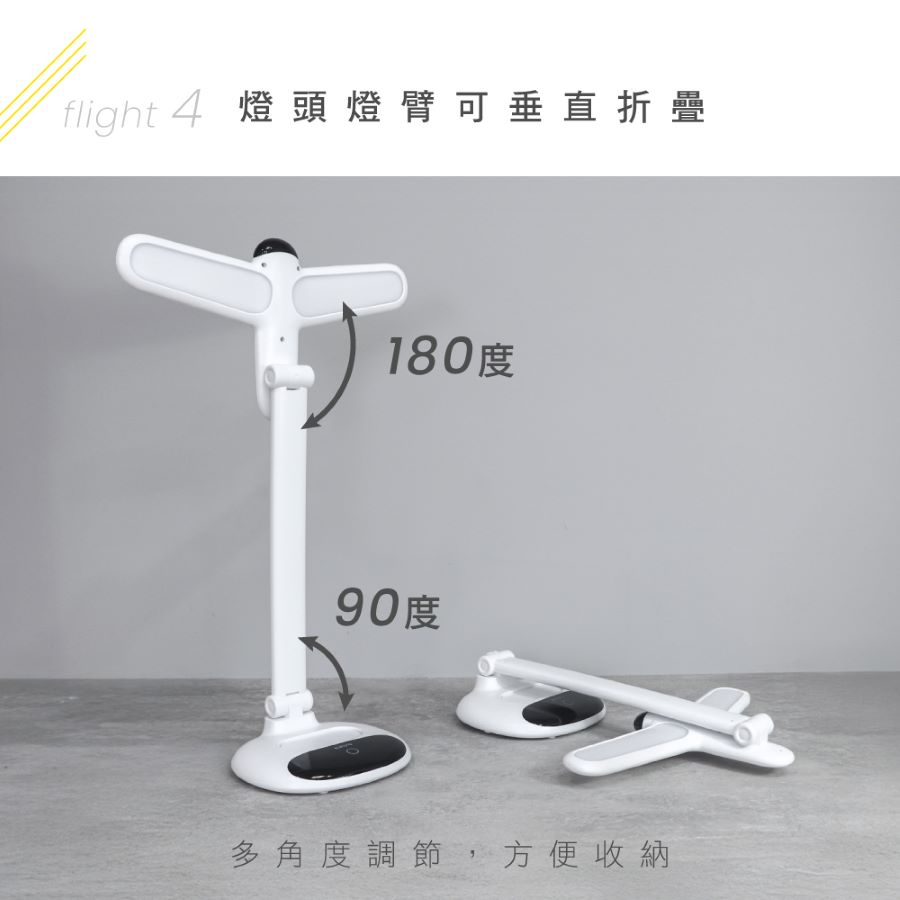 - 燈頭180度、燈臂90度折疊 │多角度調節,方便收納