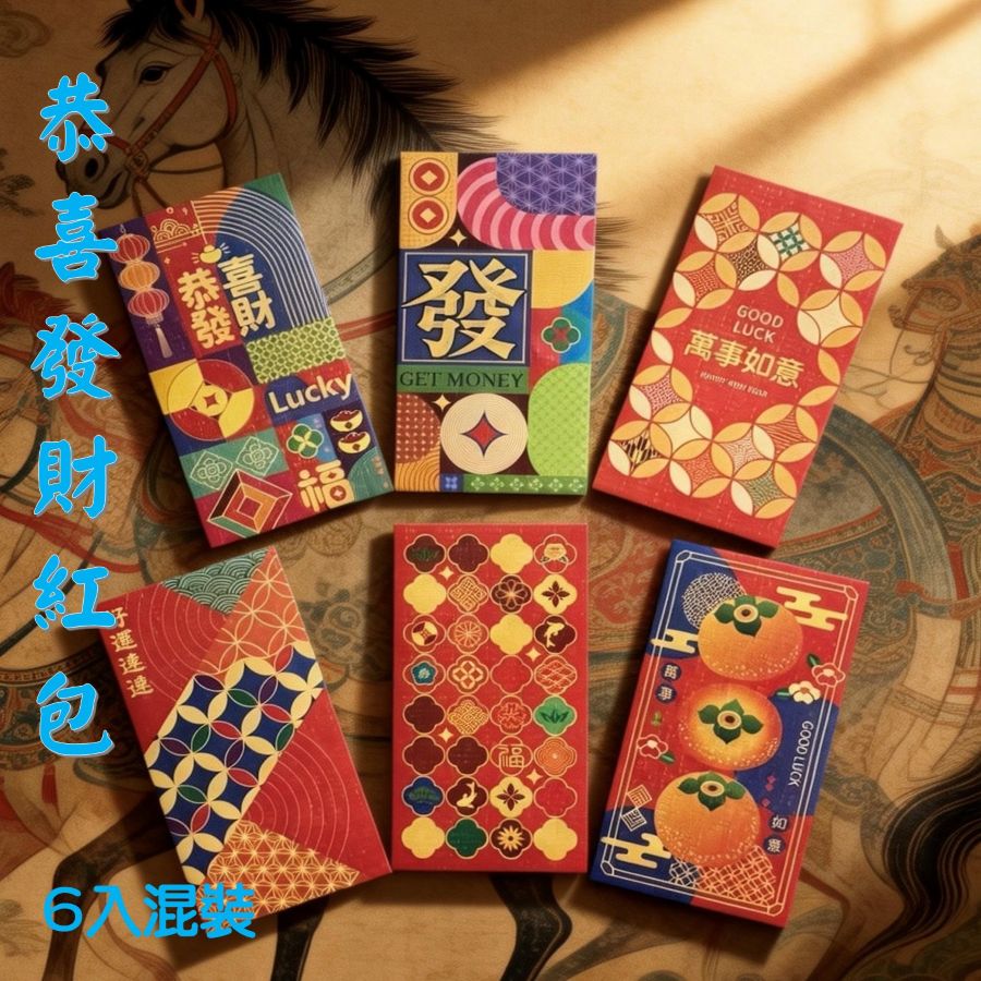 6個不同設計的紅包混裝,繽紛色塊喜氣洋洋設計,祝樂瑞會員2026萬事發發發。