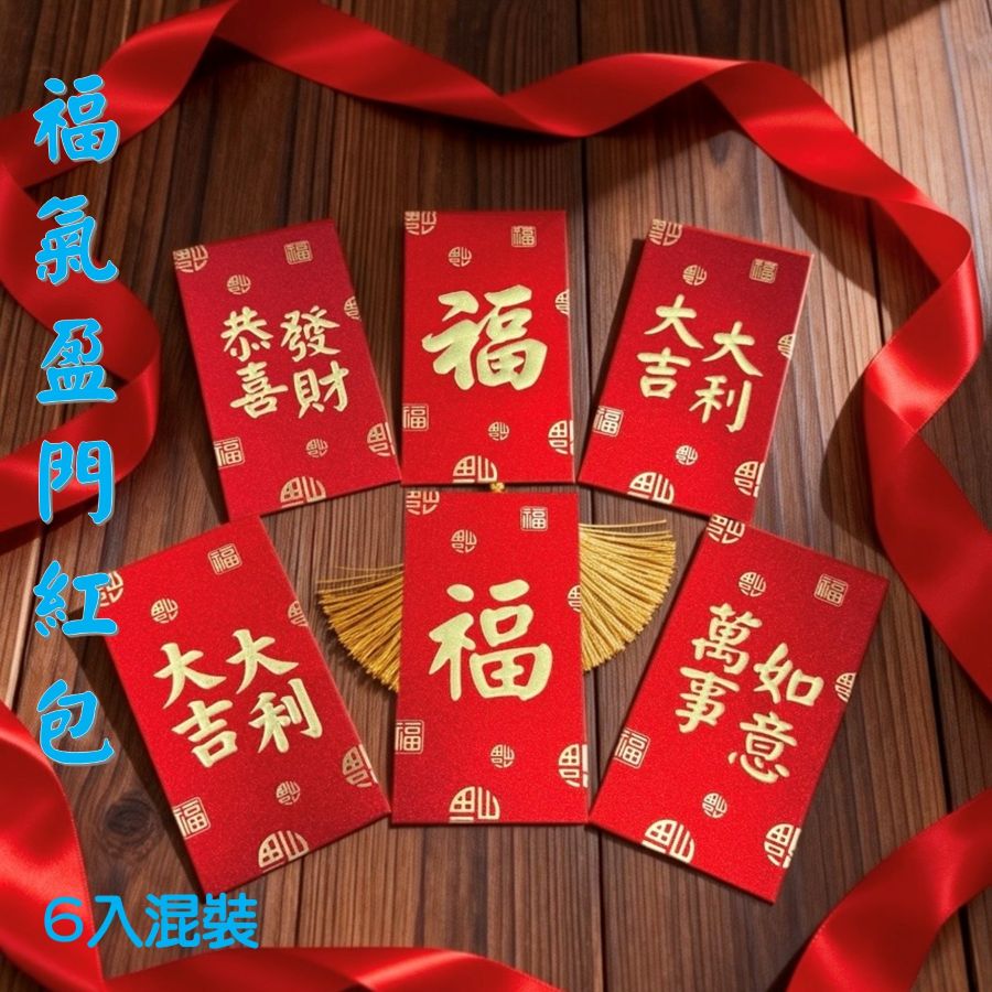 6個不同設計的紅包混裝,大紅底,點綴亮閃閃金粉,祝樂瑞會員福氣一整年。