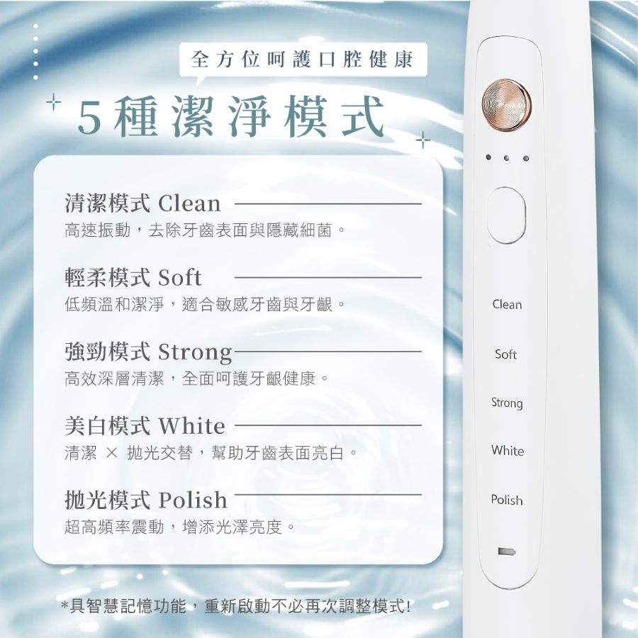 - 5種模式 × 3段強度 × 杜邦刷毛 × IPX7防水